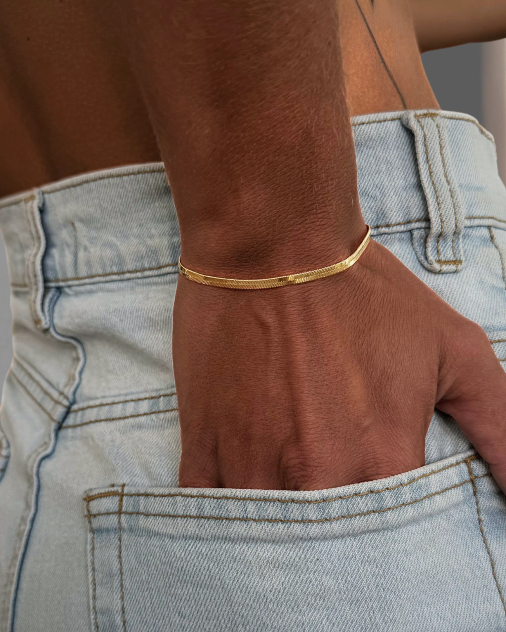 Pulsera de cadena chata y ancha. Enchapada en Oro 18k. Calidad VADEKA. Con extensión para poder regularle el largo.