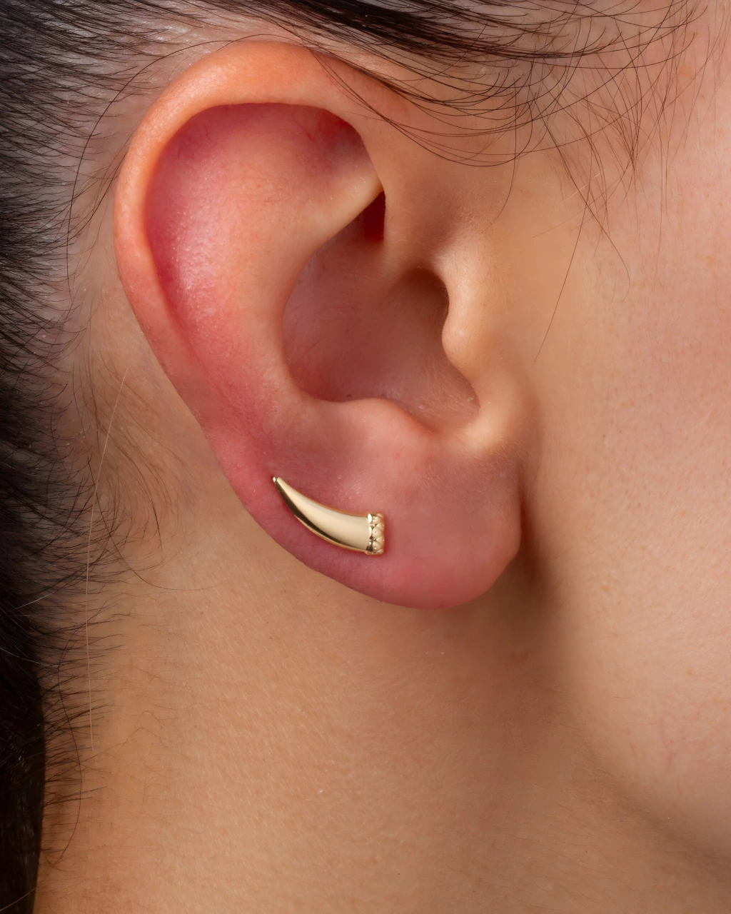Aro pasante con forma de cuerno enchapado en Oro 18k, Calidad VADEKA.