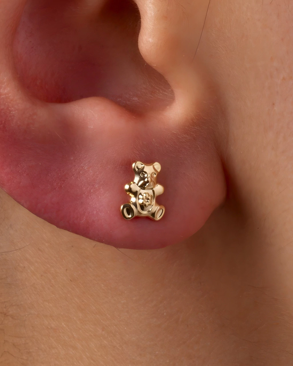 Aro tipo stud completamente enchapado en Oro 18k. Calidad VADEKA con forma de osito