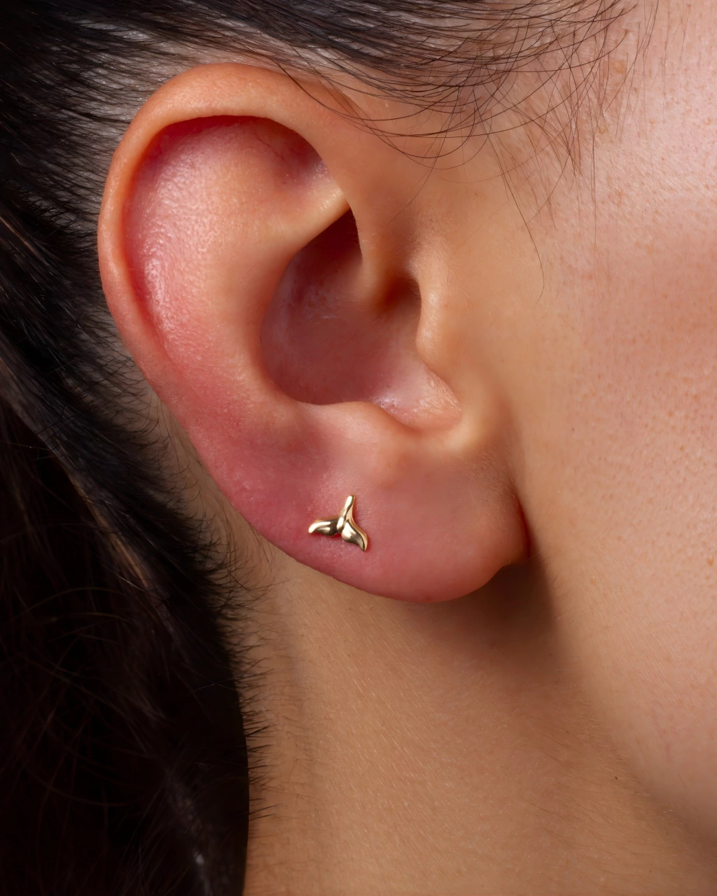 Aro pasante solitario con forma de cola de ballena enchapado en Oro 18k, Calidad VADEKA