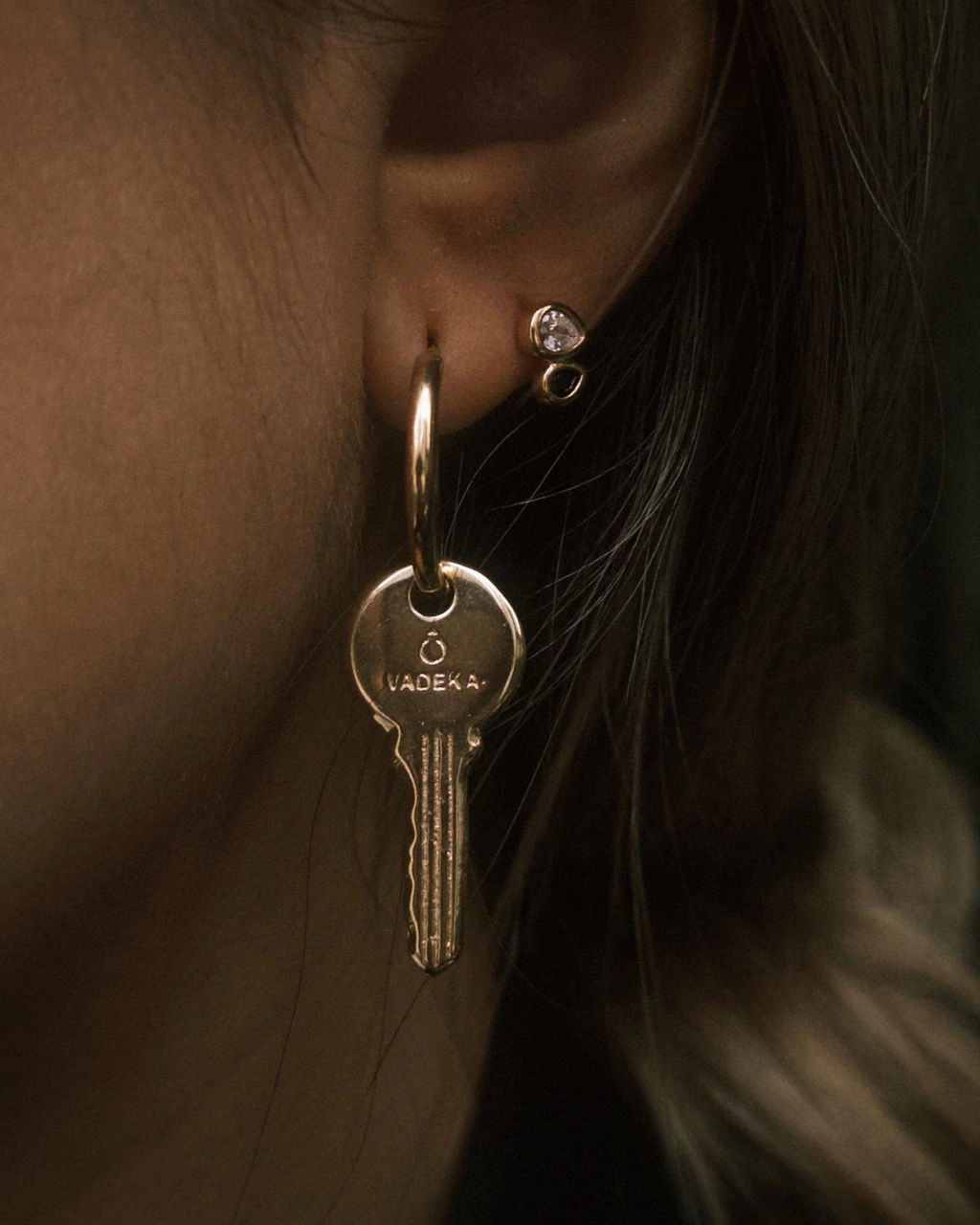 Argollita enchapada en Oro 18k, Calidad VADEKA, con dije colgante también enchapado en Oro 18k, con forma de llave.