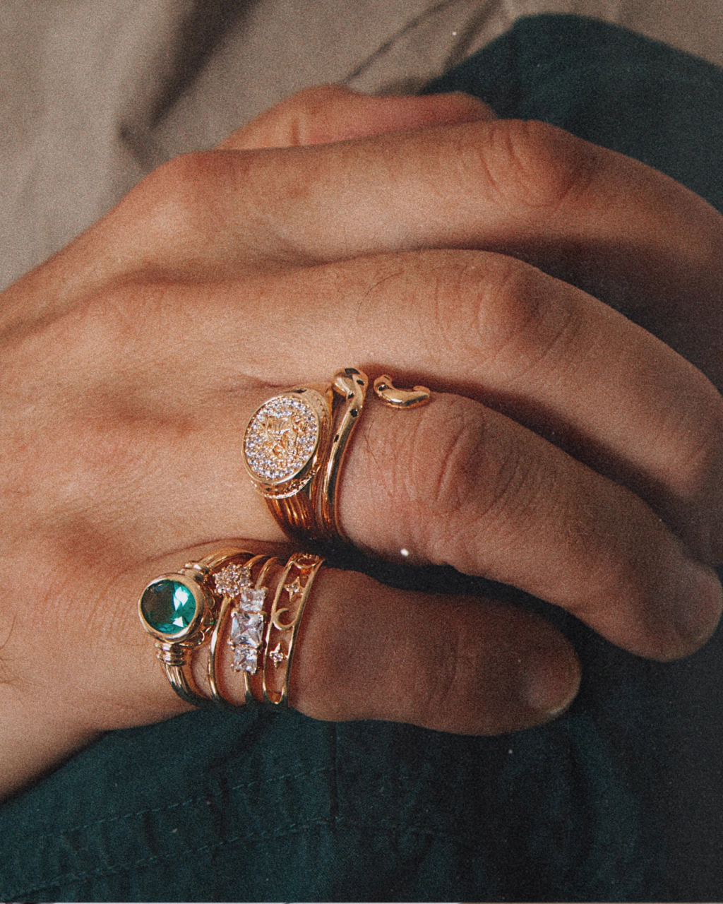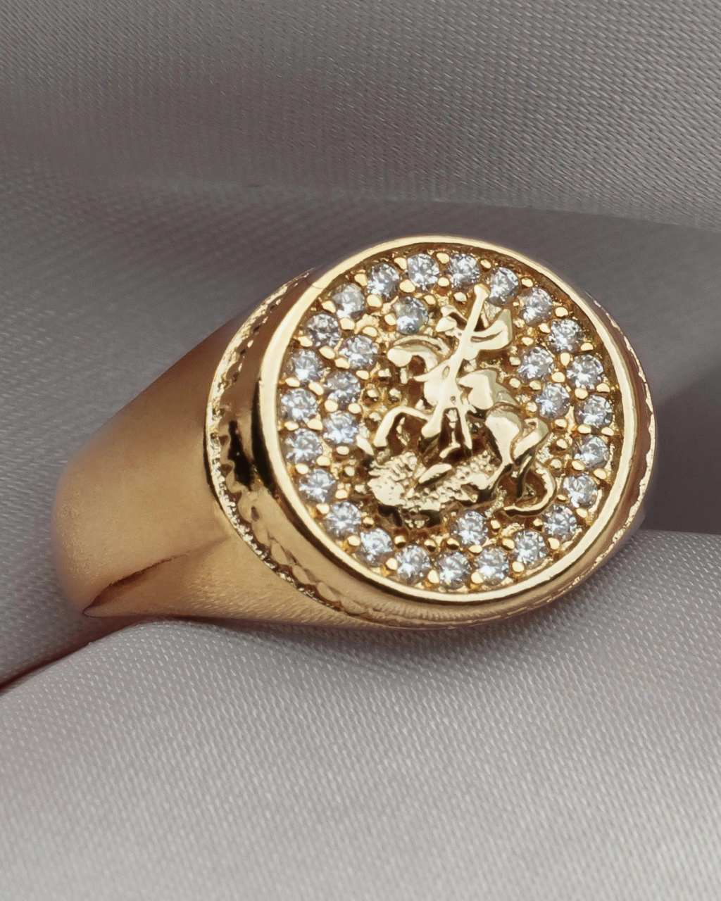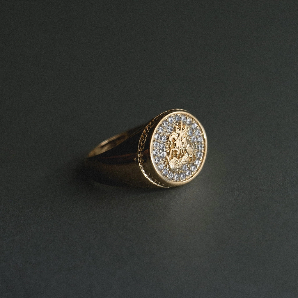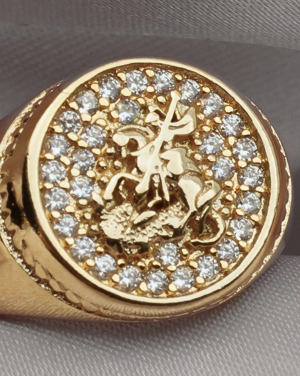 Anillo enchapado en Oro 18k, calidad VADEKA, tipo sello con mini piedritas zirconias alrededor.