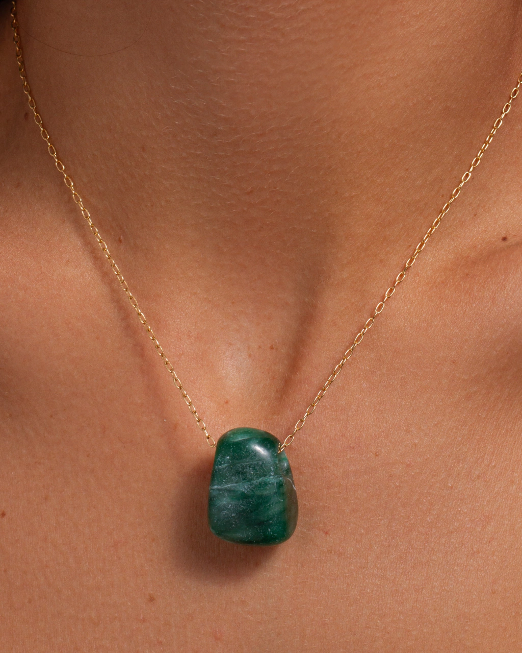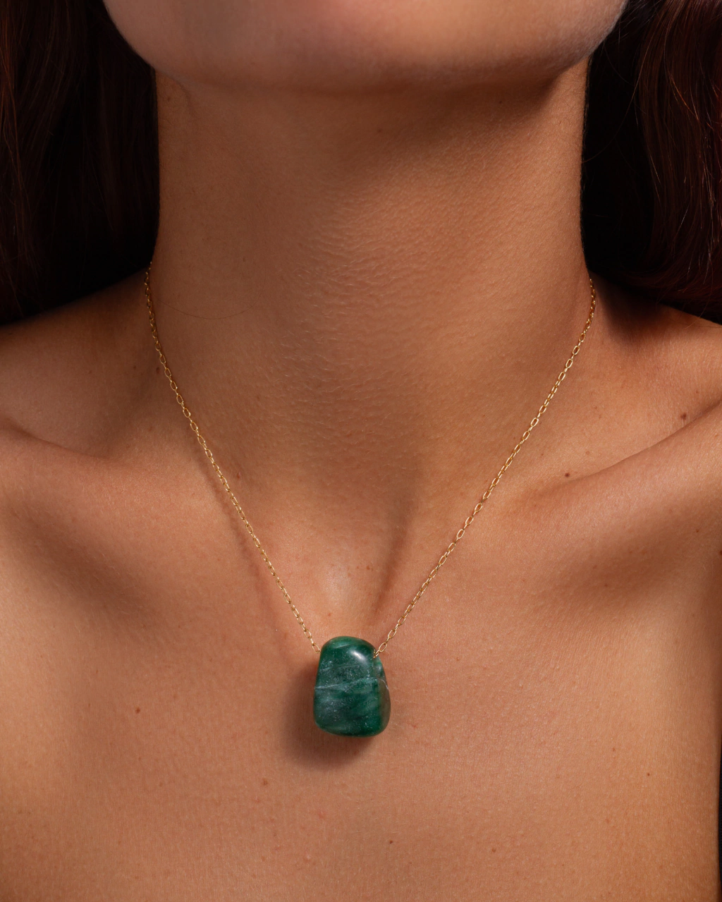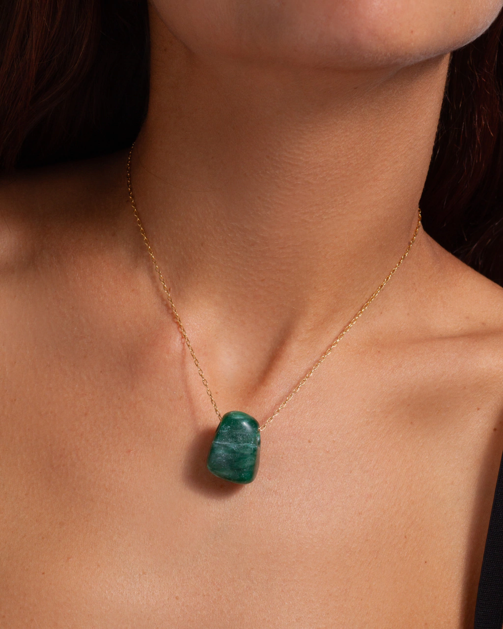 Cadena enchapada en Oro 18k., Calidad VADEKA, con una piedra semipreciosa color verde de jade africano.