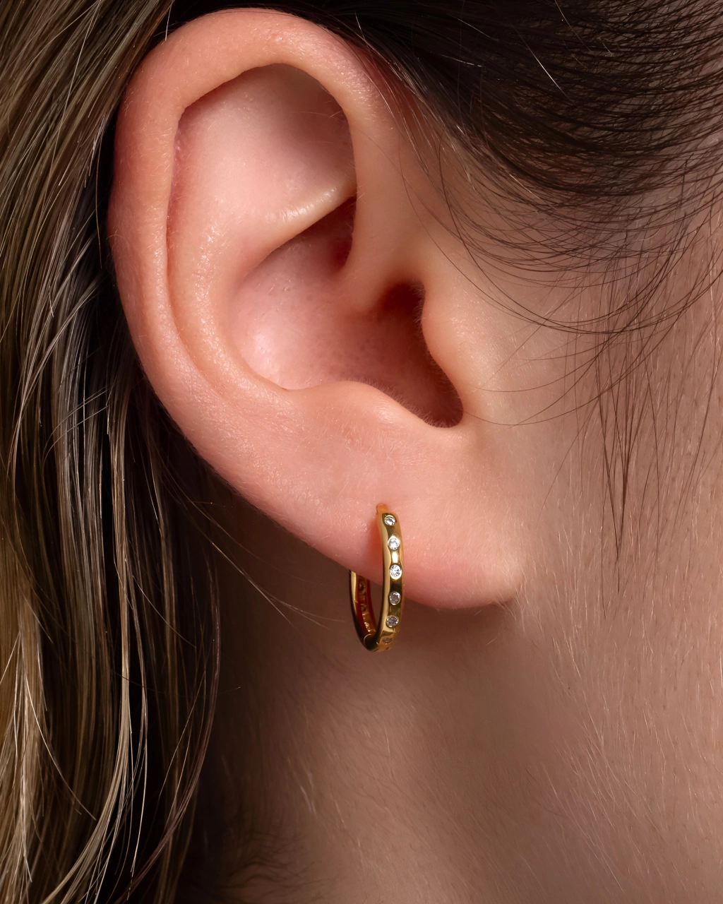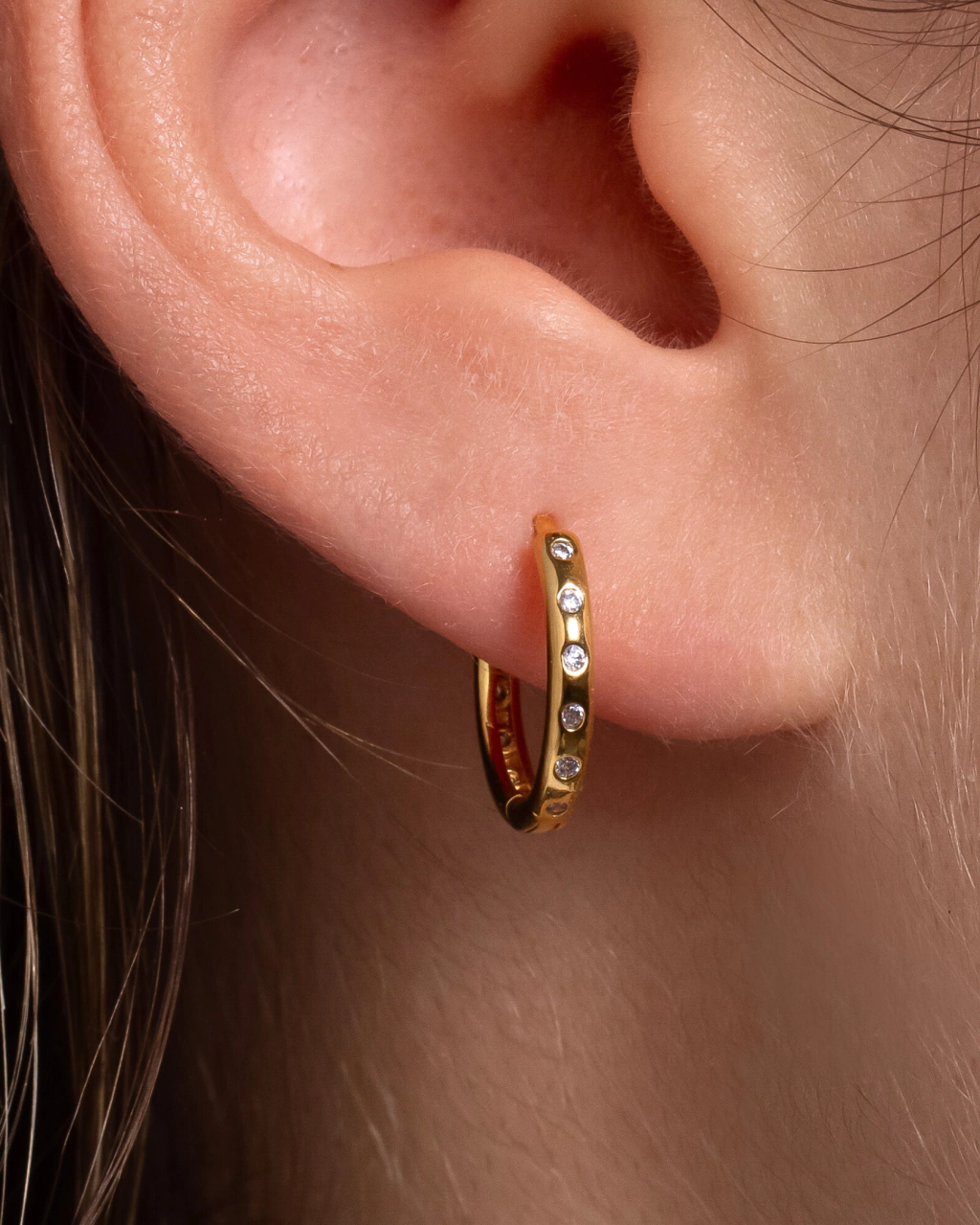 Aro argollita enchapado en Oro 18k. Calidad VADEKA con mini zirconias cristal engarzadas a su alrededor.