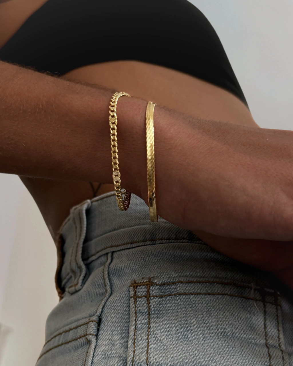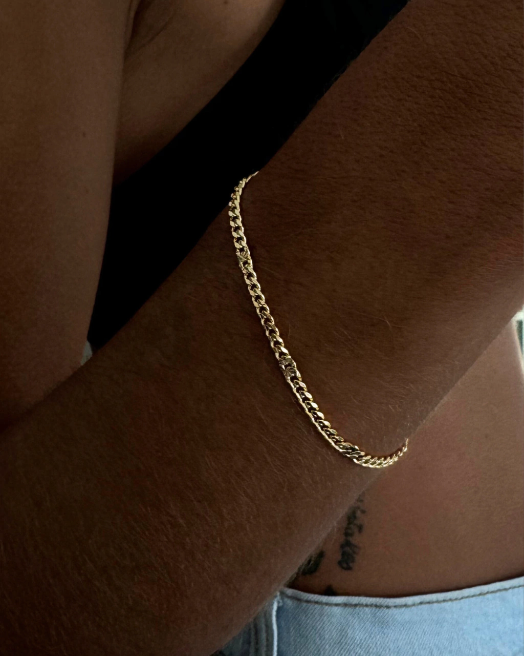 Pulsera de cadena de eslabones limados chatos. Enchapada en Oro 18k. Calidad VADEKA. Con extensión para poder regularle el largo.